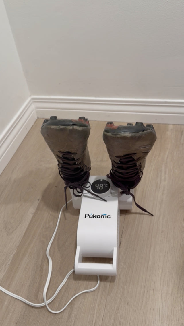 “This shoe dryer works great! I use it almost every day after work since my boots get damp. It dries them overnight and keeps them warm and fresh for the next day. It’s also really quiet, which I appreciate.”
